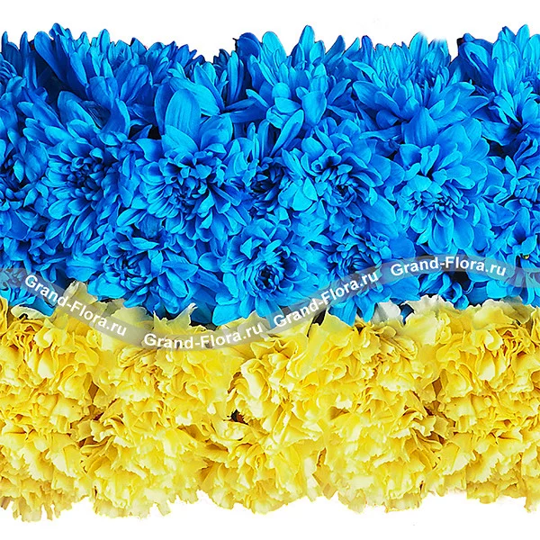 Стандартный: гвоздика кустовая желтая (или замена на хризантему кустовую желтую) - 8 шт, хризантема кустовая синяя - 5 шт, оазис.