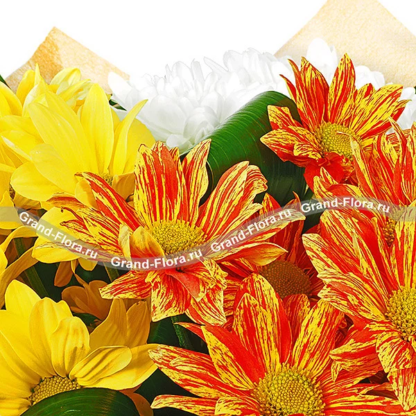Солнечные блики - букет из разноцветных кустовых хризантем(акционное предложение)